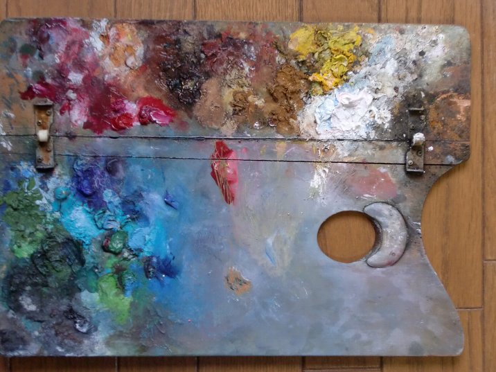| 土日に子供を連れ出してくれているので、 その間に4号の続きに取り掛かれた。 あまりの暑さに外に出して乾かしていたパレットが傷み そこに突然の夕立、パレットはとうとう真っ二つに破損。 ・・・さすがに30年近く経つから・・・年季の入ったパレットを捨てられず 裏から布ガムテで補強してもうひとがんばりする予定。 メインは使い捨てパレットを使うことに。 慣れなくていなんとも嫌なんだけど、太いゴムバンドを巻いて 左手の上に乗っかるように工夫。 絵の具チューブの掃除もするようにした。 フタの開閉に手間取って創意がそがれるので、 ときどきチューブのフタとよくちの間で固まってるのを取り除くことにする。 今日も暑い。今週も35度を超えていくみたい。 追記 バラの作品3点に加筆、と「南国のバラ」で寝かせてたのを完成。 充実感。 |